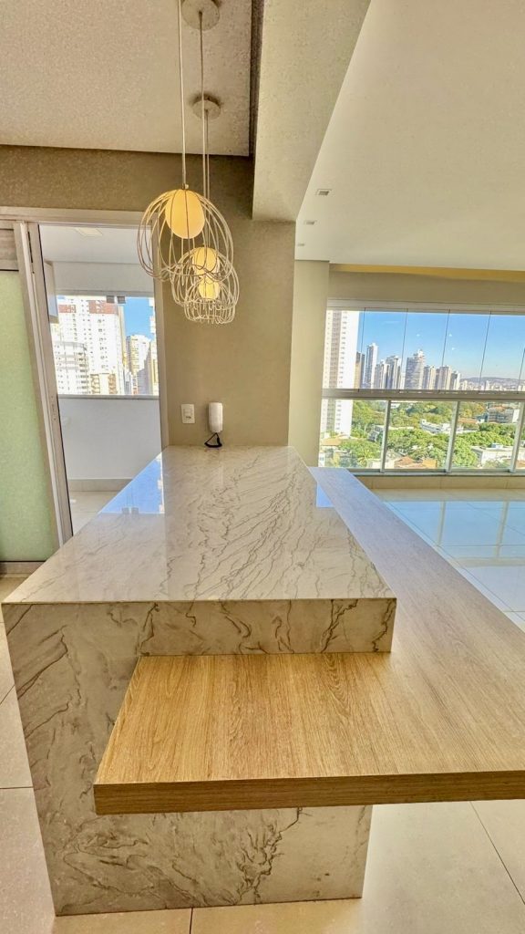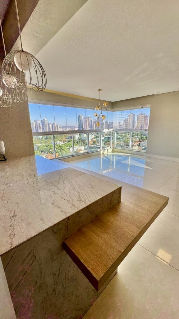 Apartamento a venda no setor Bueno em Goiânia com 115m2, 3 suítes plenas, sala com 3 ambientes, projeto de iluminação arrojado, mix de mármores importados, todo climatizado em prédio moderno com lazer completíssimo, oportunidade única!